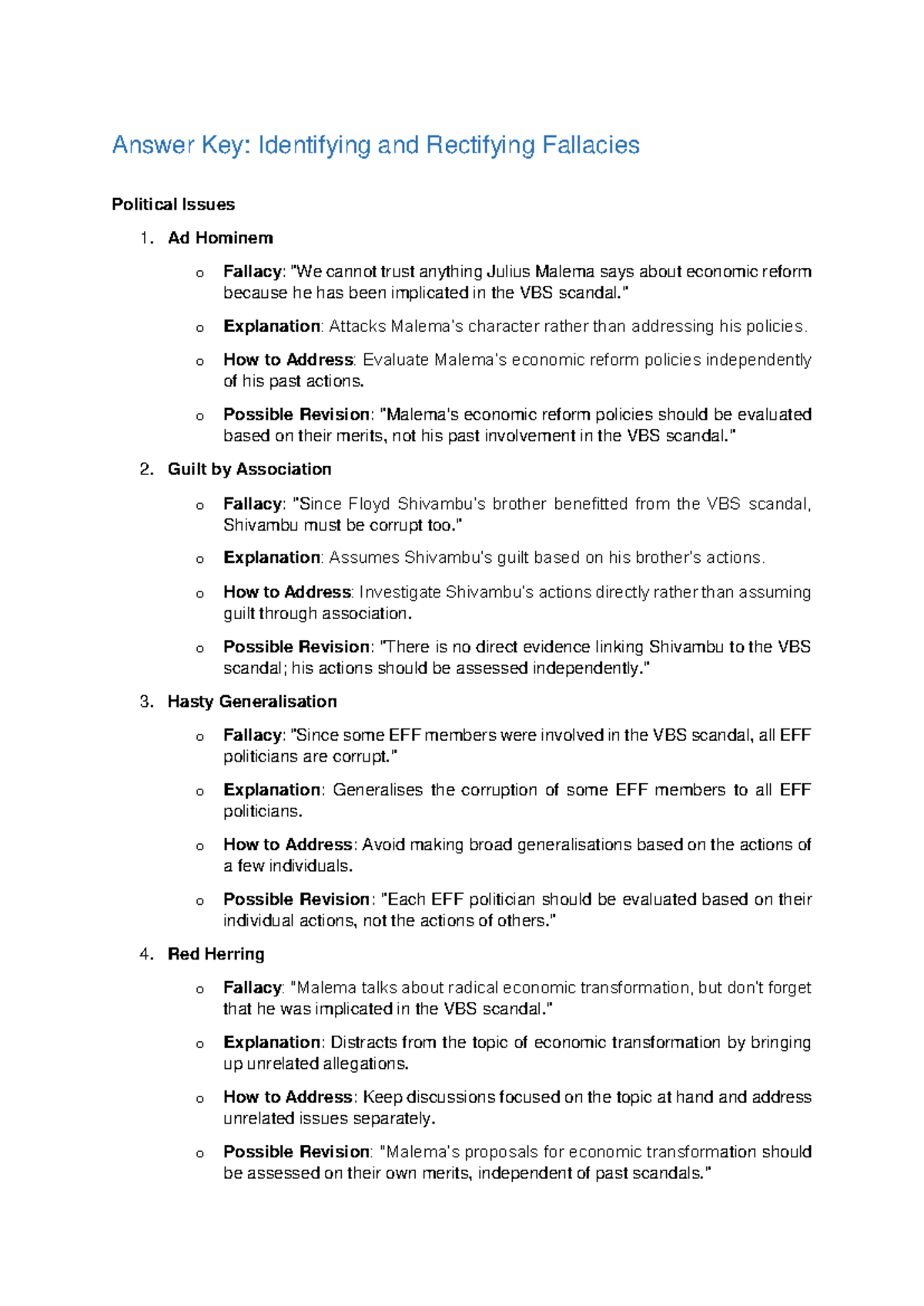 Answer Key Identiying Logical Fallacies Answer Key: Identifying and