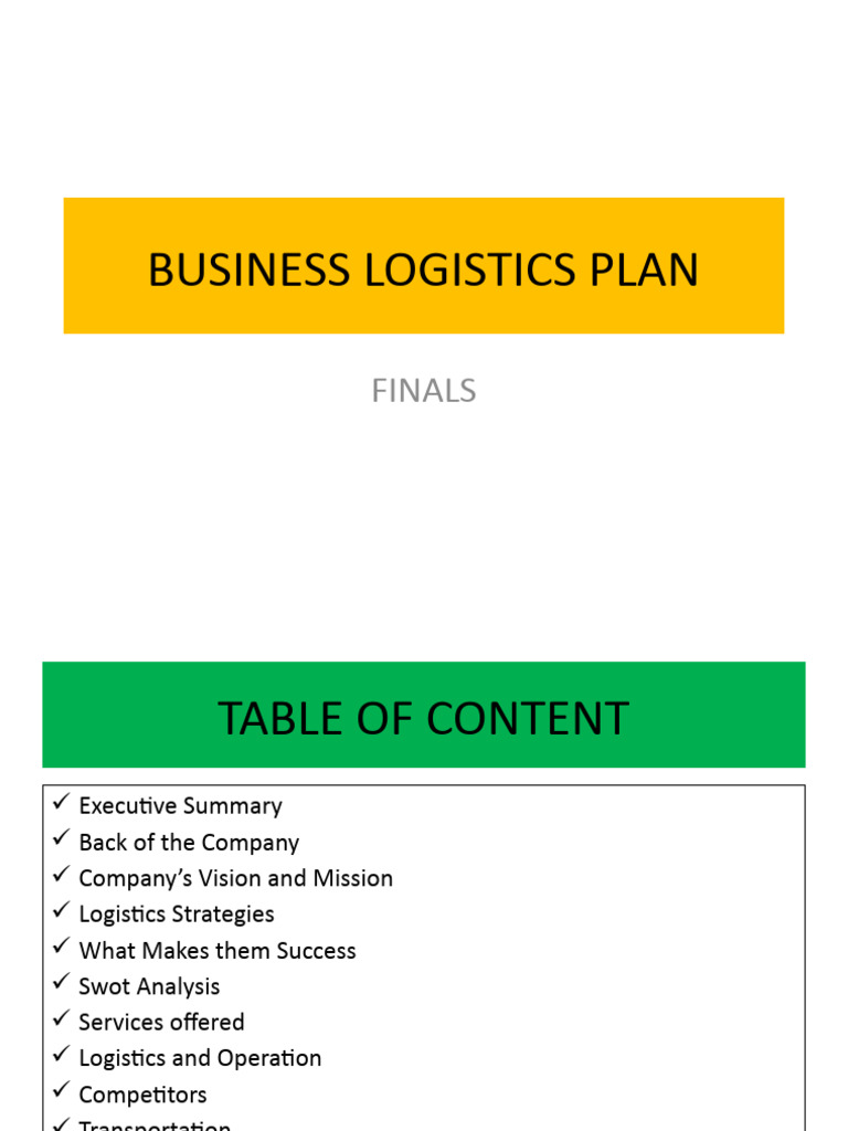 A Well Detailed Business Plan For Transportation and Logistics Business