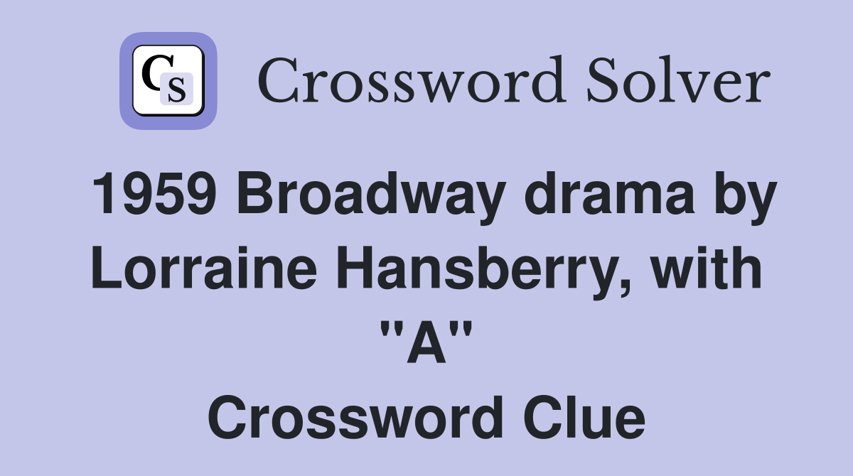 1959 Broadway drama by Lorraine Hansberry with quot A quot Crossword Clue
