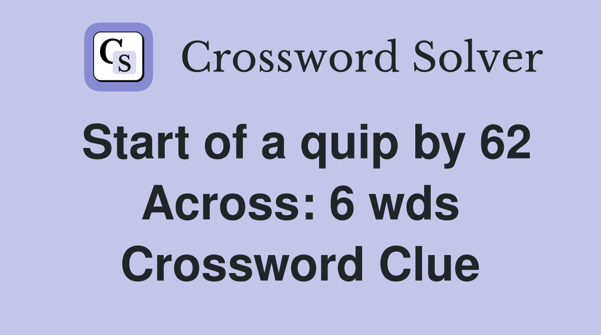 Start of a quip by 62 Across: 6 wds Crossword Clue Answers
