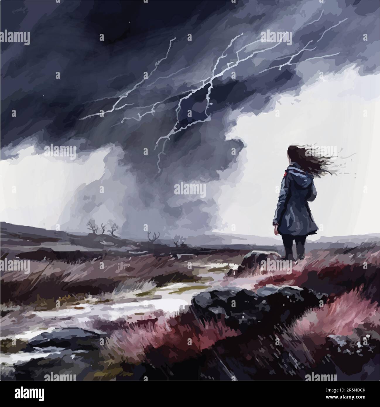 Download Lone Warrior Facing A Stormy Sky With Lightning And Heavy Rain