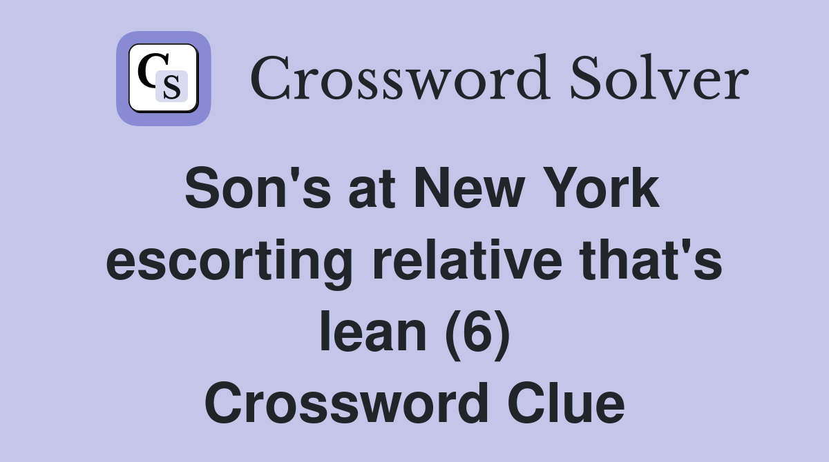 Son s at New York escorting relative that s lean (6) Crossword Clue