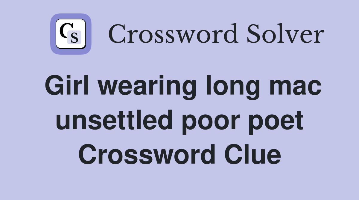 Girl wearing long mac unsettled poor poet Crossword Clue Answers