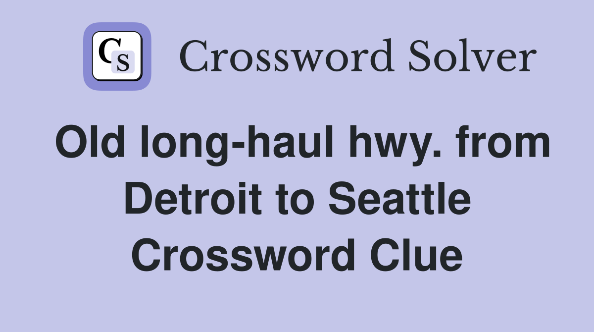 Old long haul hwy from Detroit to Seattle Crossword Clue Answers