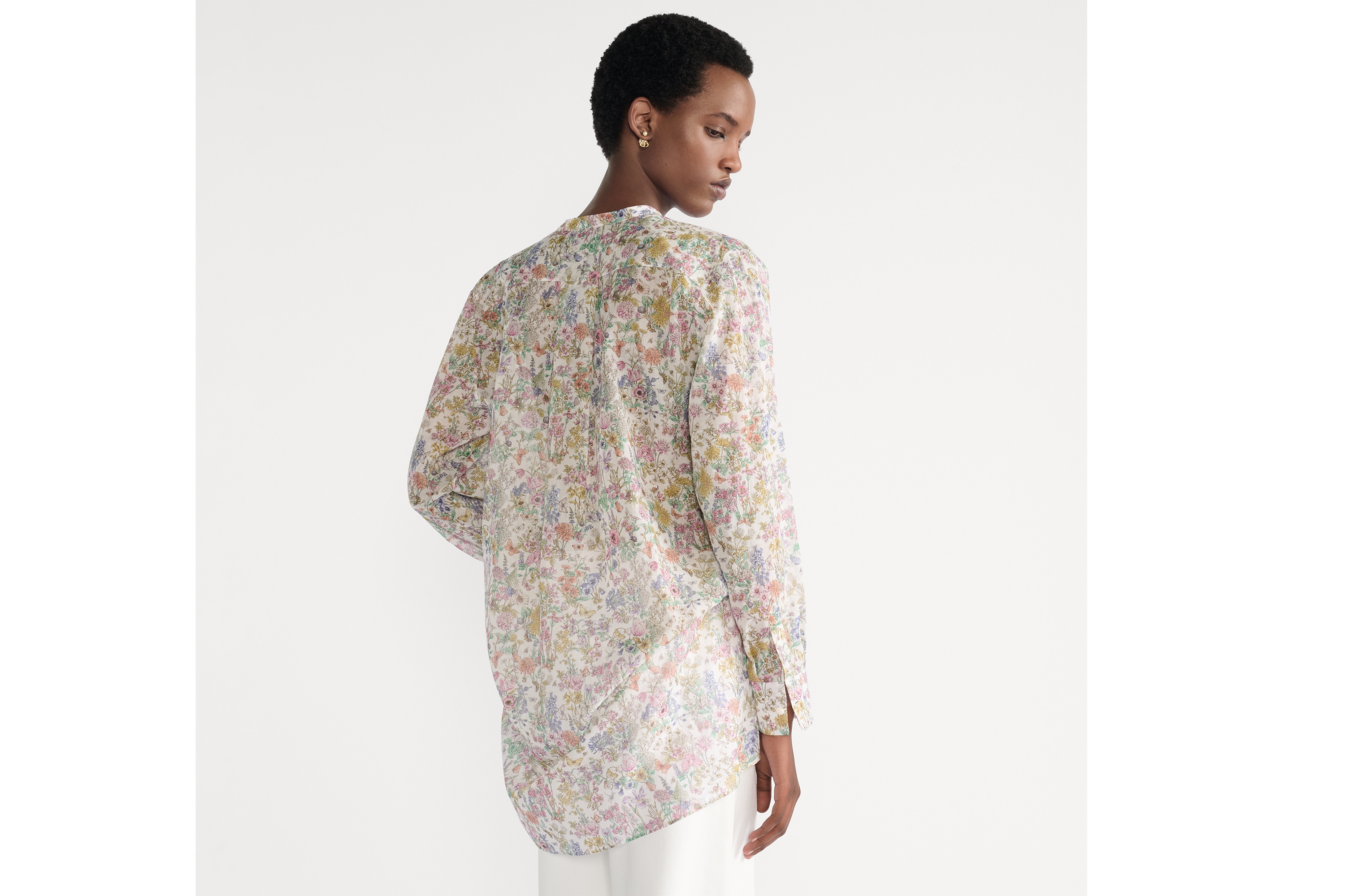Long Blouse Cotton Muslin with Multicolor Dior Flowers Calendar Allover