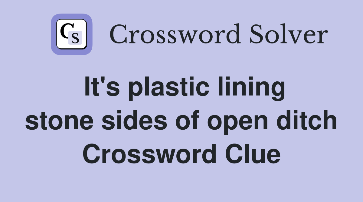 It #39 s plastic lining stone sides of open ditch Crossword Clue Answers