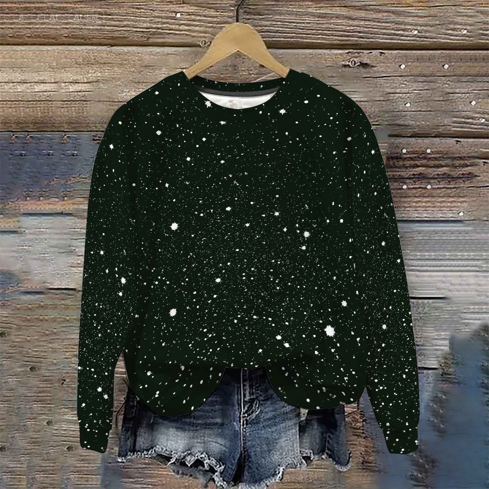 EchfiProm Trendy Tops for Women Graphic Pullover Long Sleeve Loose Crew