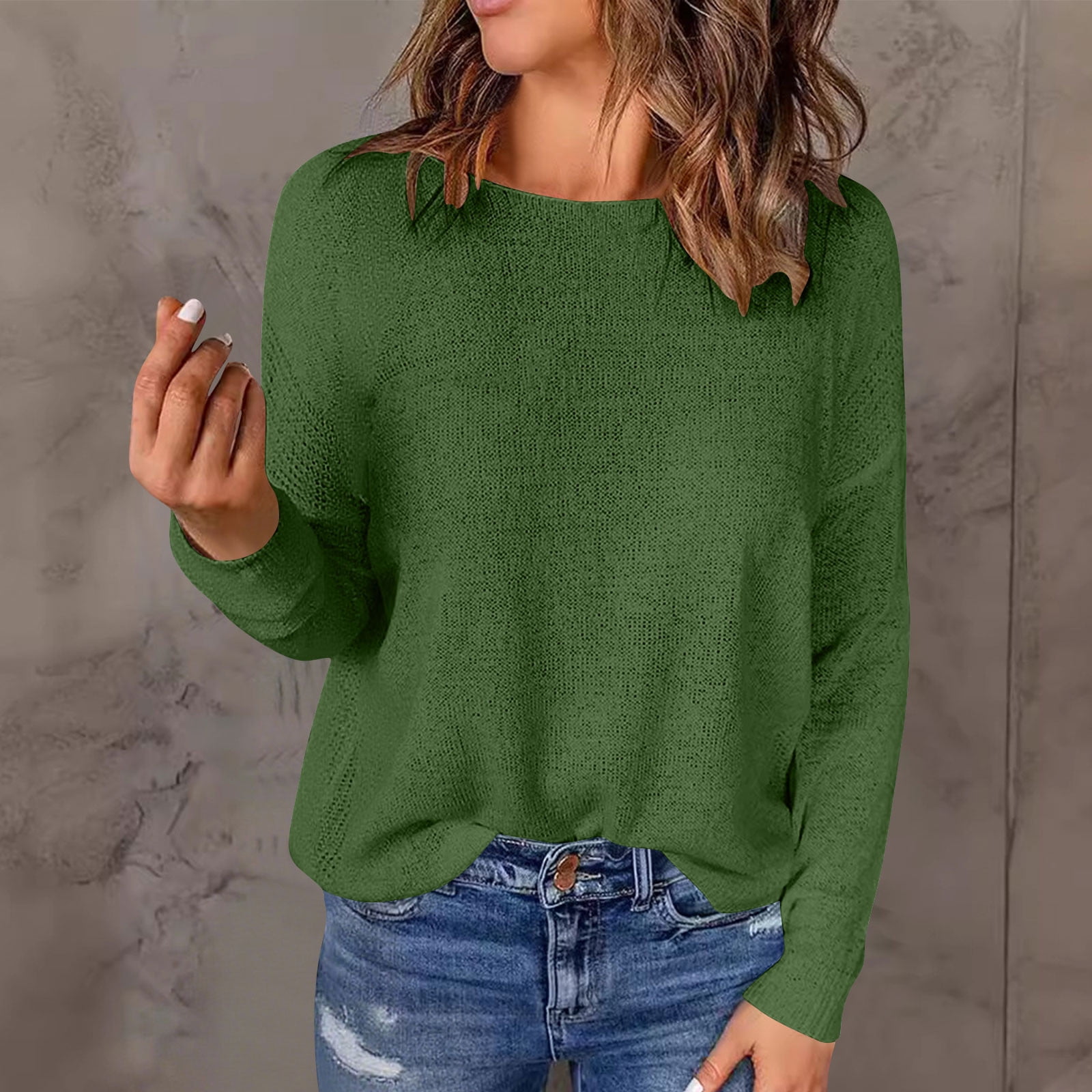 EchfiProm Womens Relaxed Fit Tops Long Sleeve Green Fall Solid Crew