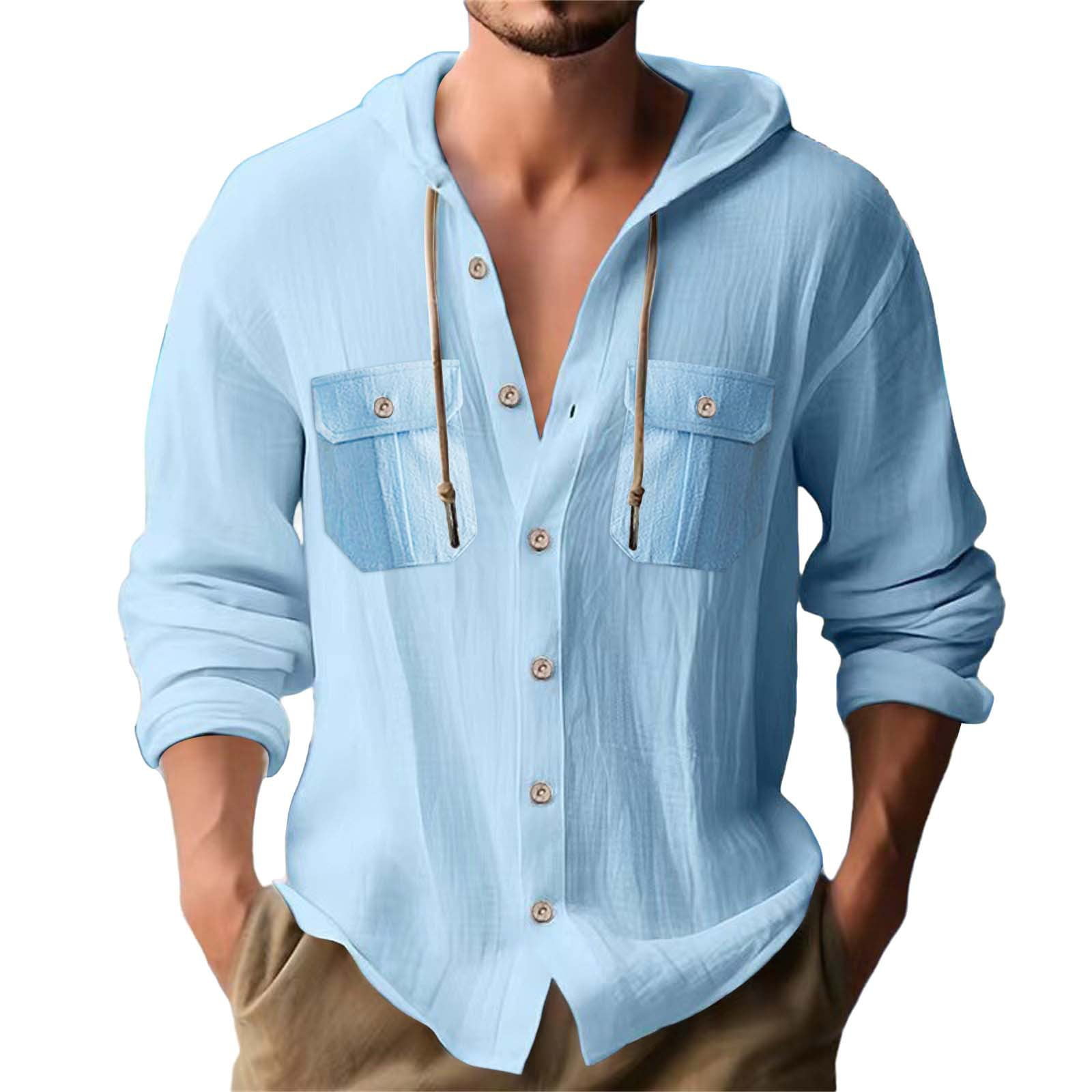 Dagugfen Mens Shirts Hoodie Button down Long Sleeve Drawstring Loose