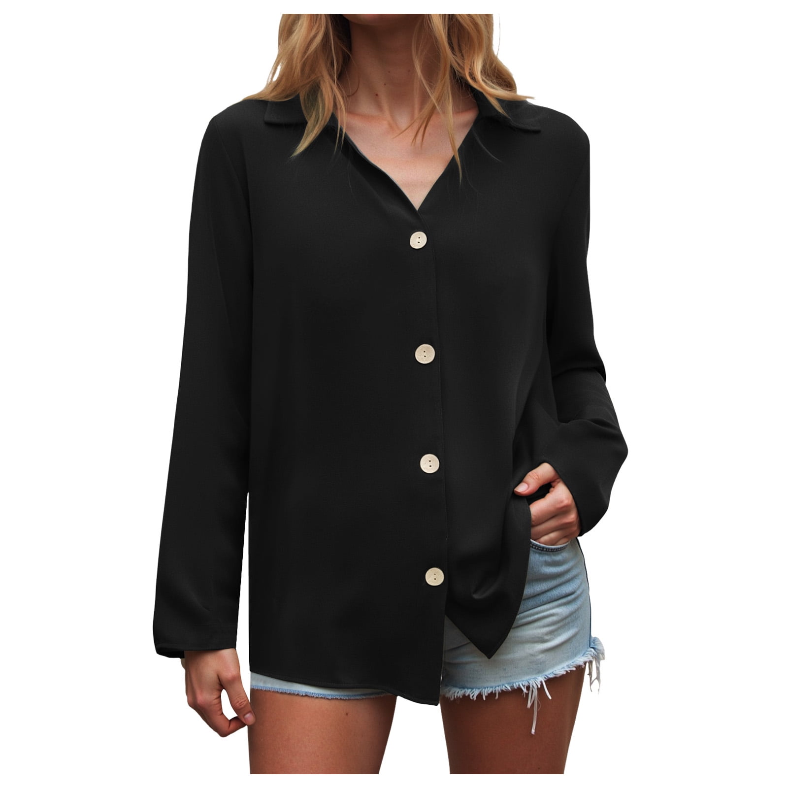 GEWSEY Women Button Down Shirts Long Sleeve Chiffon Office V Neck