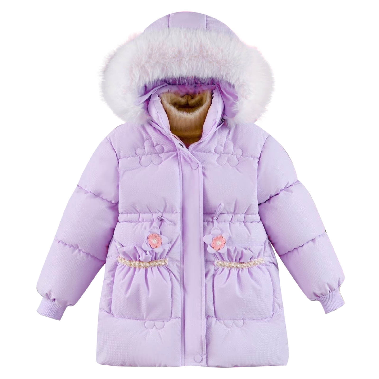 Generic Girls Long Hooded Puffer Jacket Flower Winter Thicken Padded