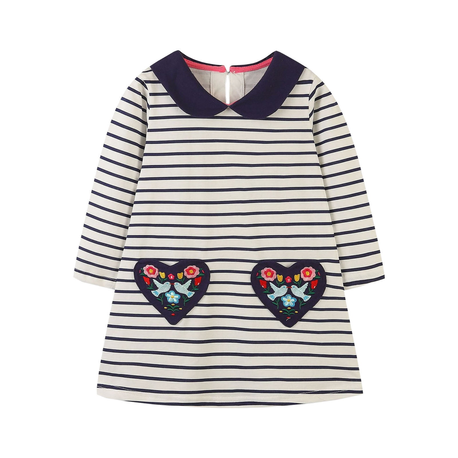 Girls Cotton Long Sleeve Dress Casual Cartoon Party Dresses White 6 7