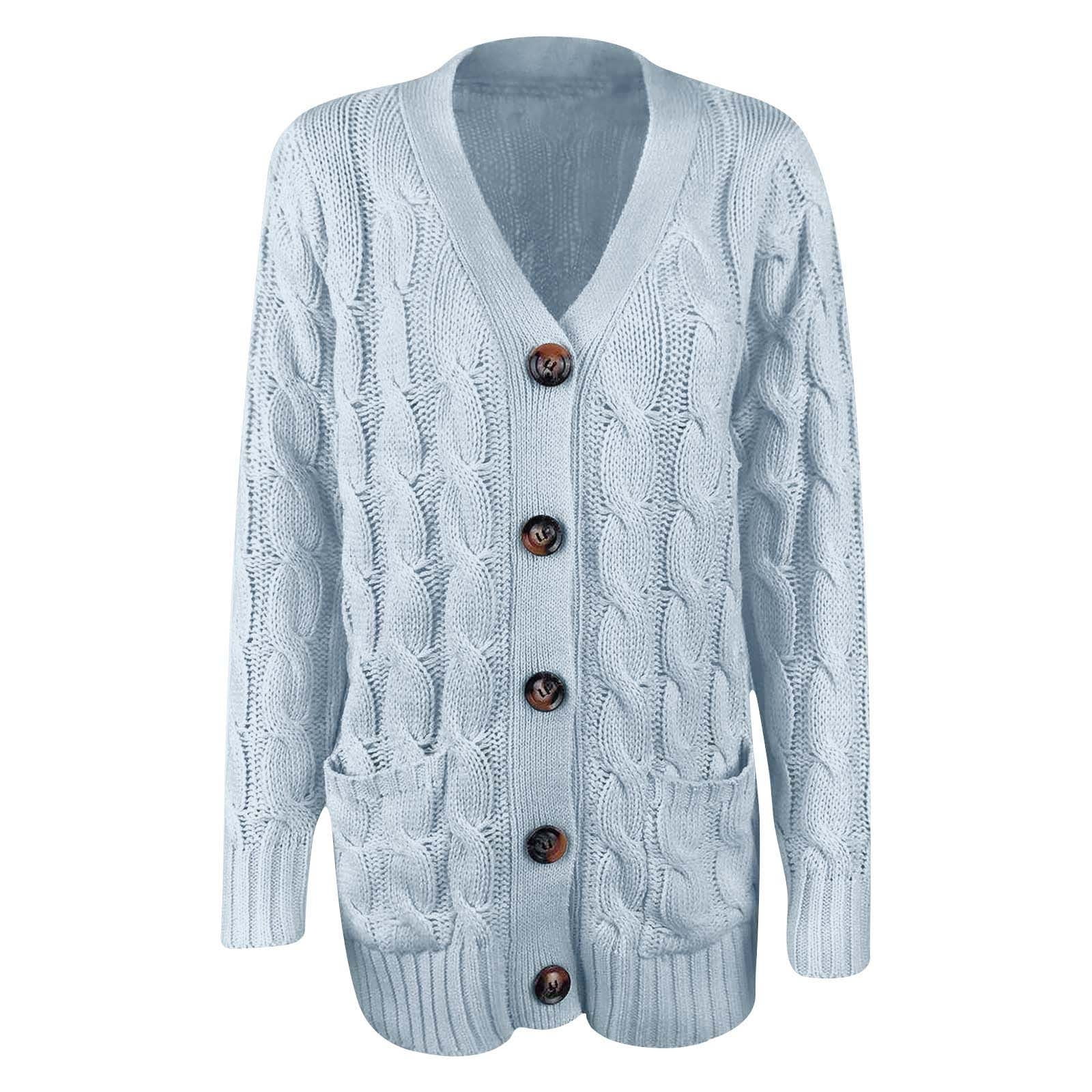 HTNBO Women #39 s Cable Knit Cardigan Long Sleeve Open Front Button Down