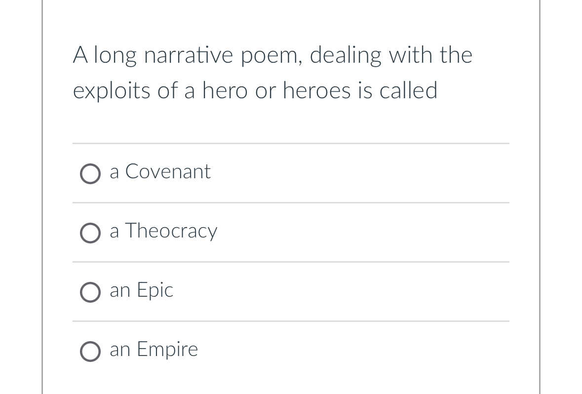 Solved A long narrative poem dealing with the exploits of a Chegg com