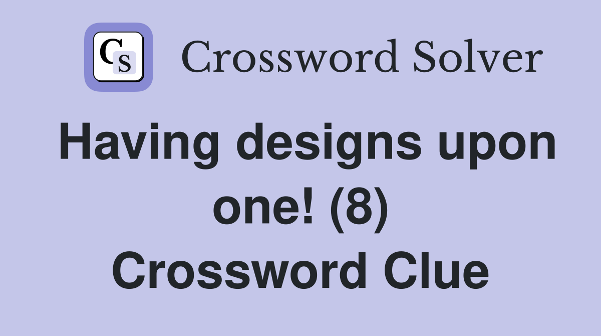 Having designs upon one (8) Crossword Clue Answers Crossword Solver