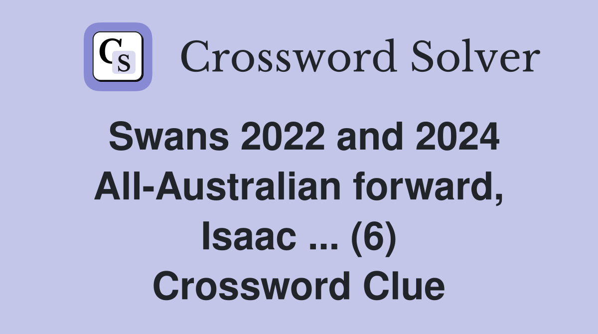 Swans 2022 and 2024 All Australian forward Isaac (6) Crossword