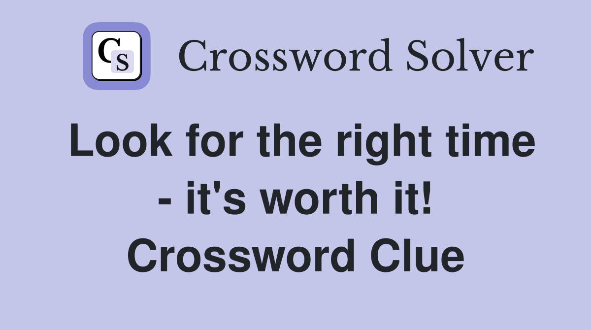 Look for the right time it #39 s worth it Crossword Clue Answers