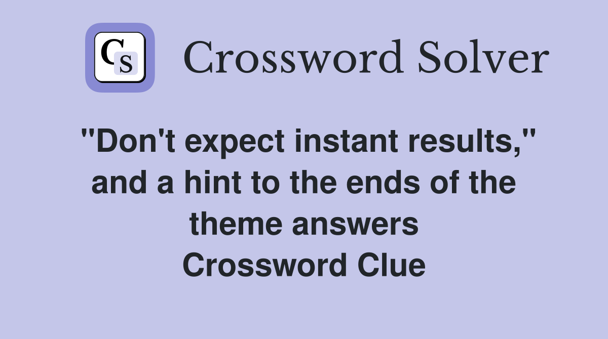 quot Don #39 t expect instant results quot and a hint to the ends of the theme