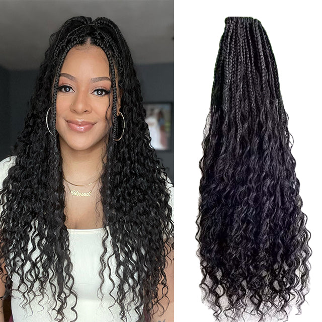 Pre Looped Crochet Boho Box Braids Human Hair Curls 18 Inch Eayonhair