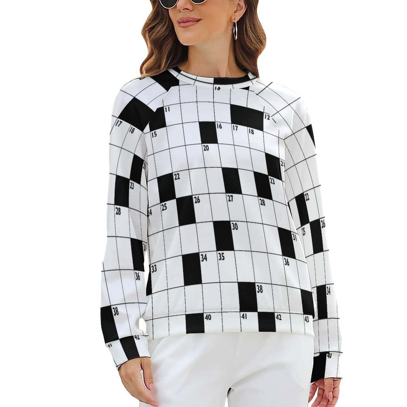 Crossword Empty Boxes Pattern Ladies Tops Women Sweatshirts With Long
