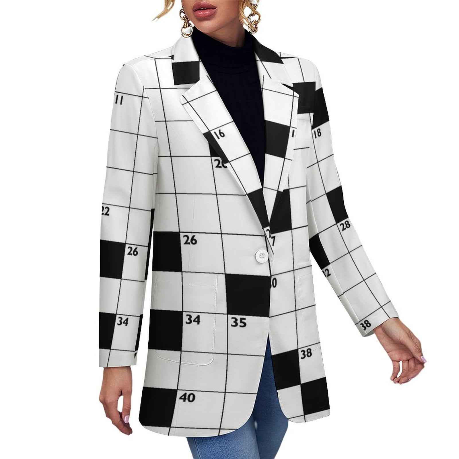 Crossword Empty Boxes Pattern Woman Casual Loose Suits Summer Jacket