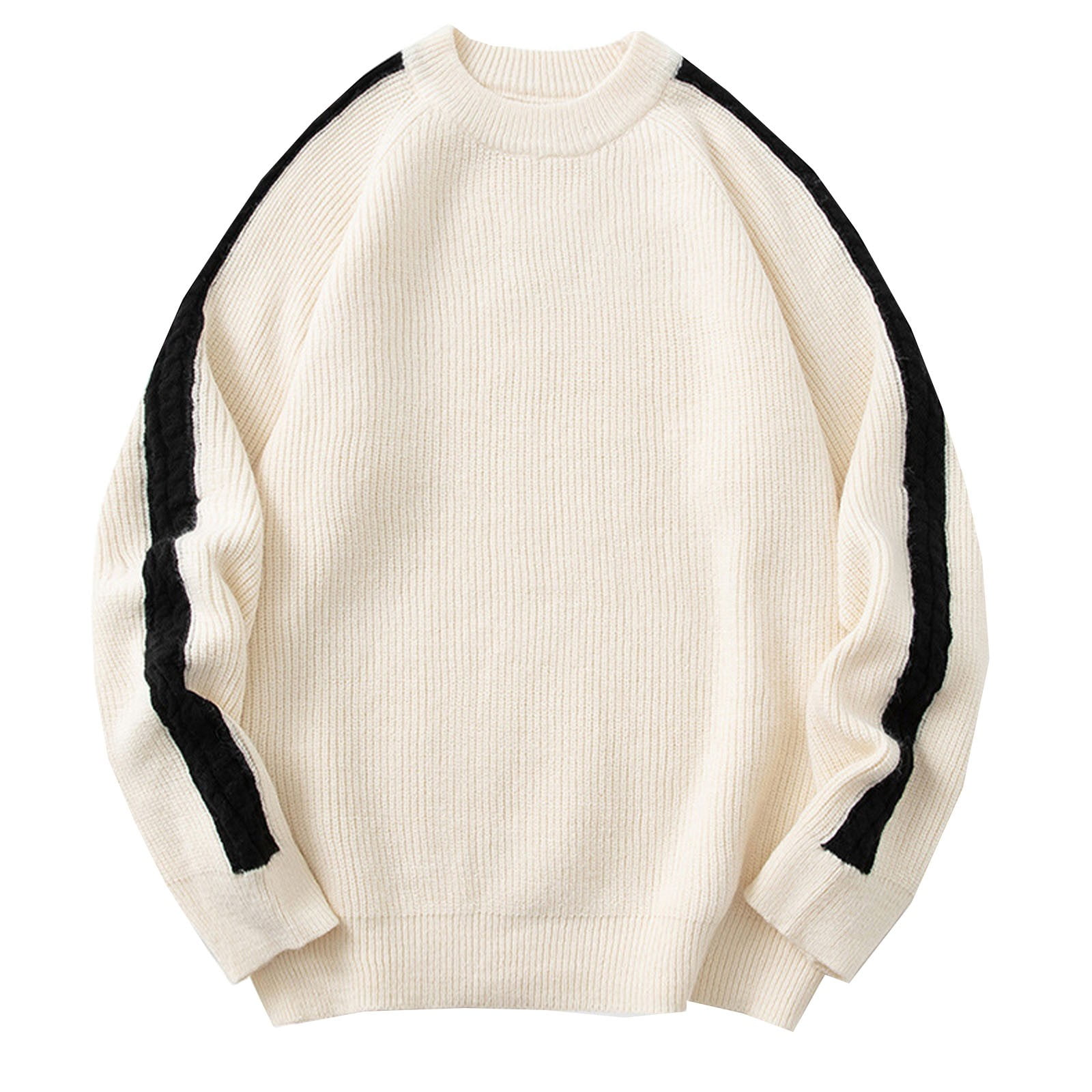 Ahabrexf Men #39 s Collar Button Striped Loose Casual Long Sleeved Sweater