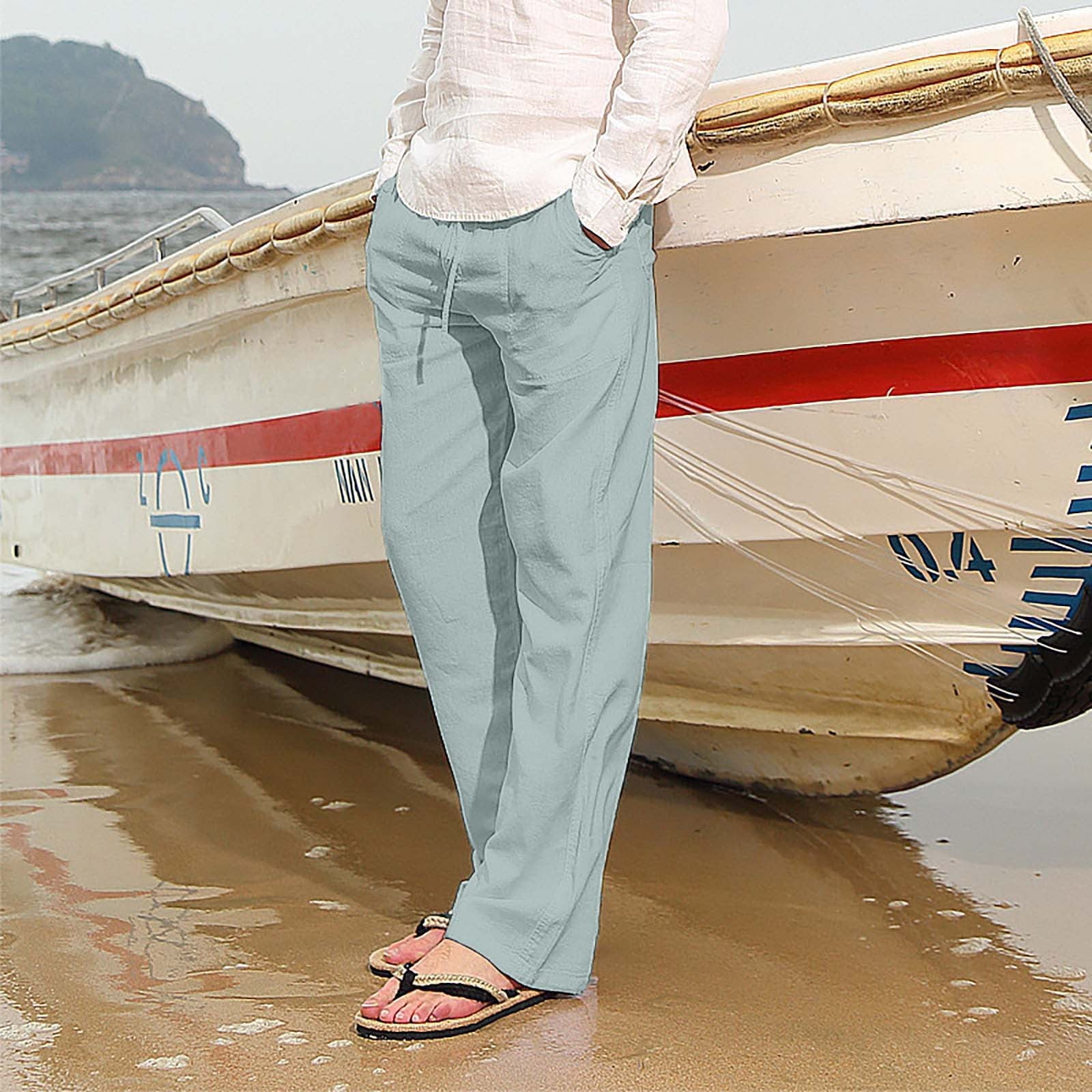BXINGOHAI Mens Casual Linen Pants Elastic Waist Lightweight Loose Fit