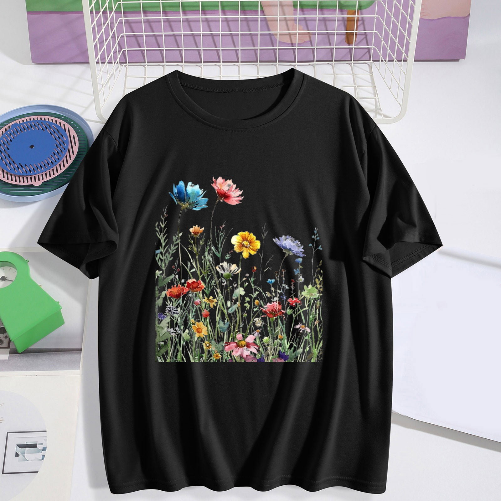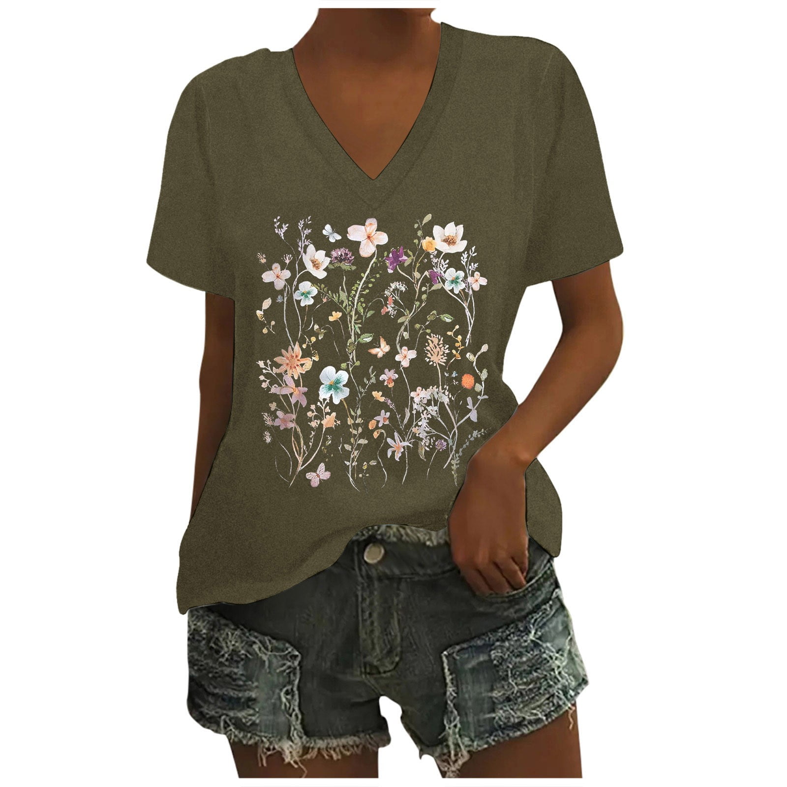 Fshinging T Shirts For Women Tops Vintage Floral Short Sleeve Boho