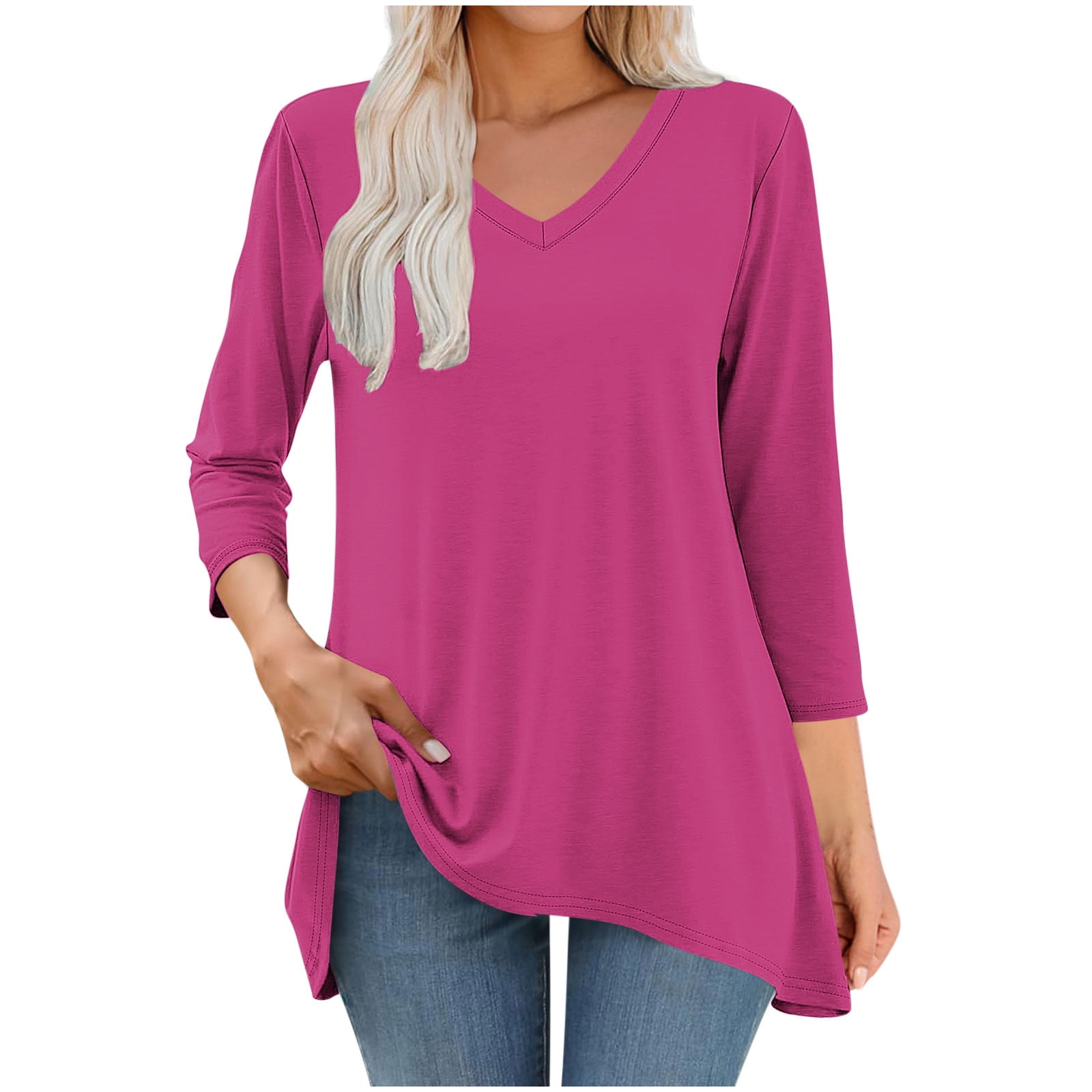Kukoosong Women #39 s 3/4 Sleeve T shirts Fashion Crewneck Loose Irregular
