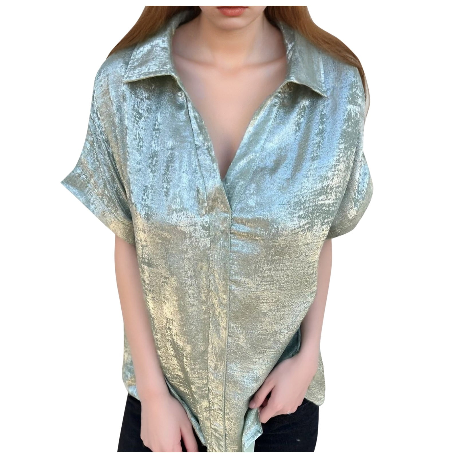 Ladies Summer New Casual Loose Short Sleeve Lapel Shirt Walmart com