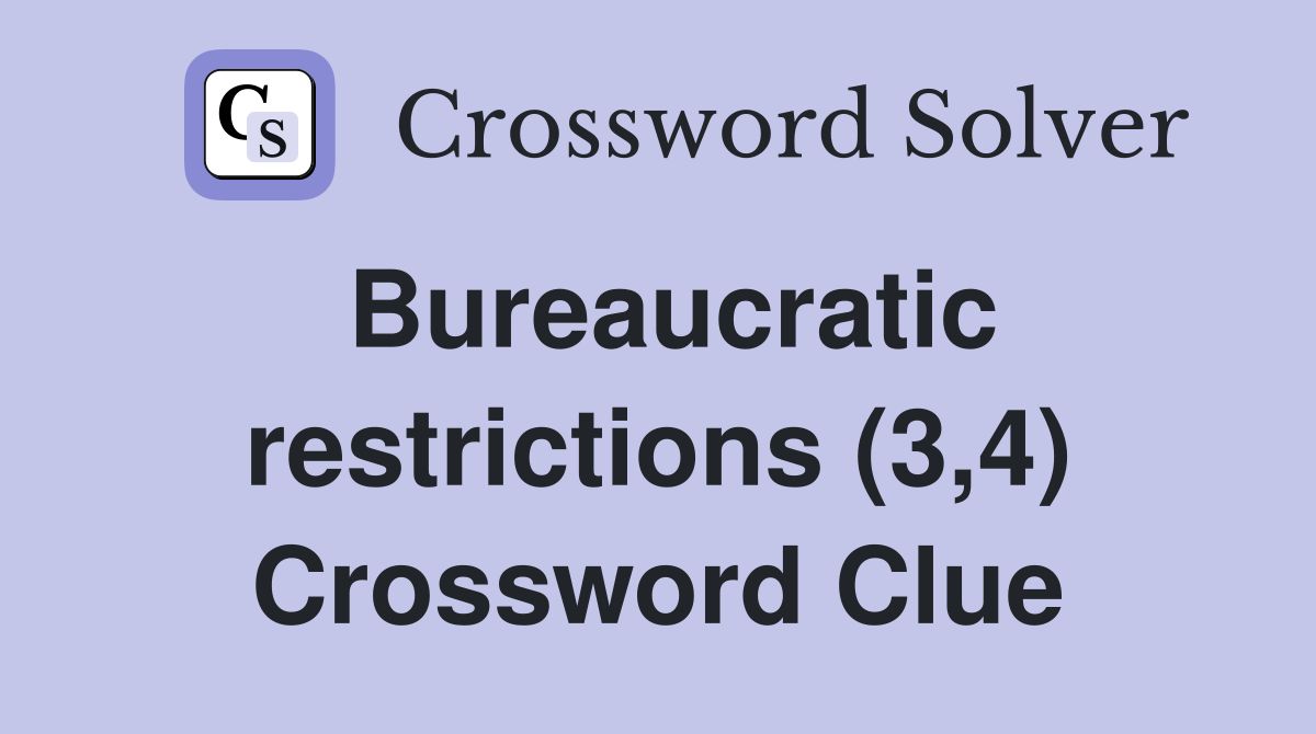 Bureaucratic restrictions (3 4) Crossword Clue Answers Crossword Solver