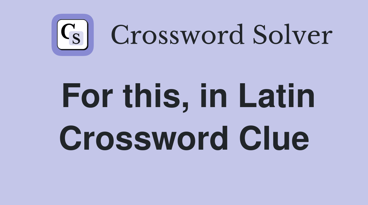 For this in Latin Crossword Clue Answers Crossword Solver