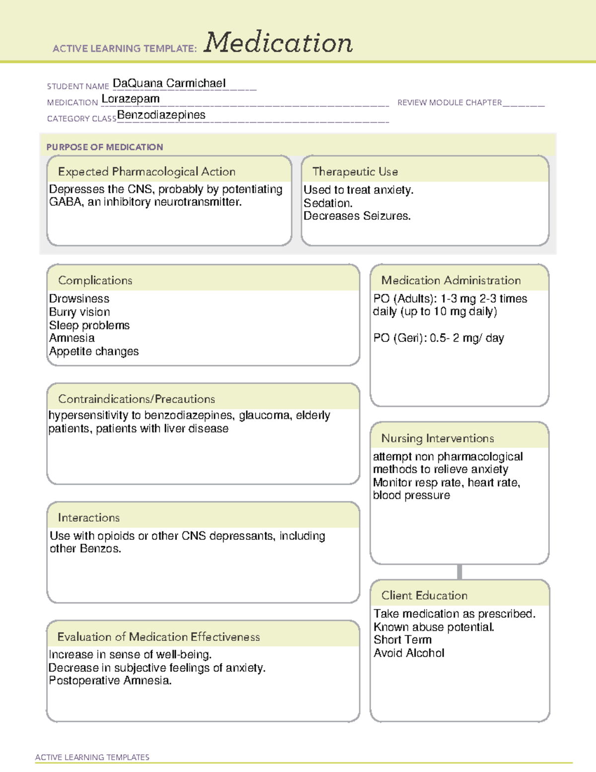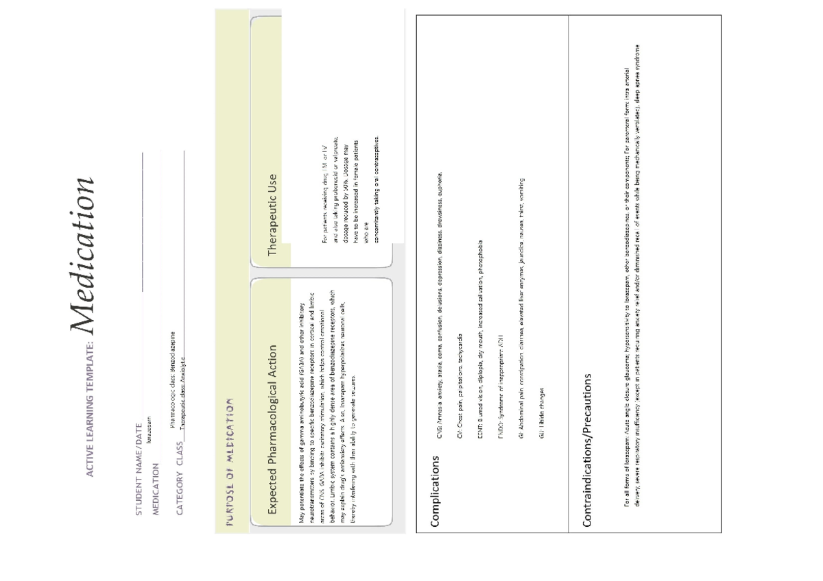 Lorazepam med template ACTIVE LEARNING TEMPLATES Medication STUDENT
