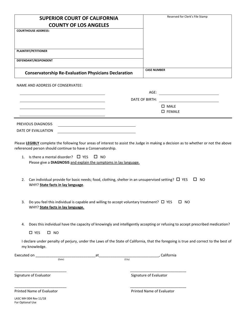 Form LASC MH004 Fill Out Sign Online and Download Fillable PDF