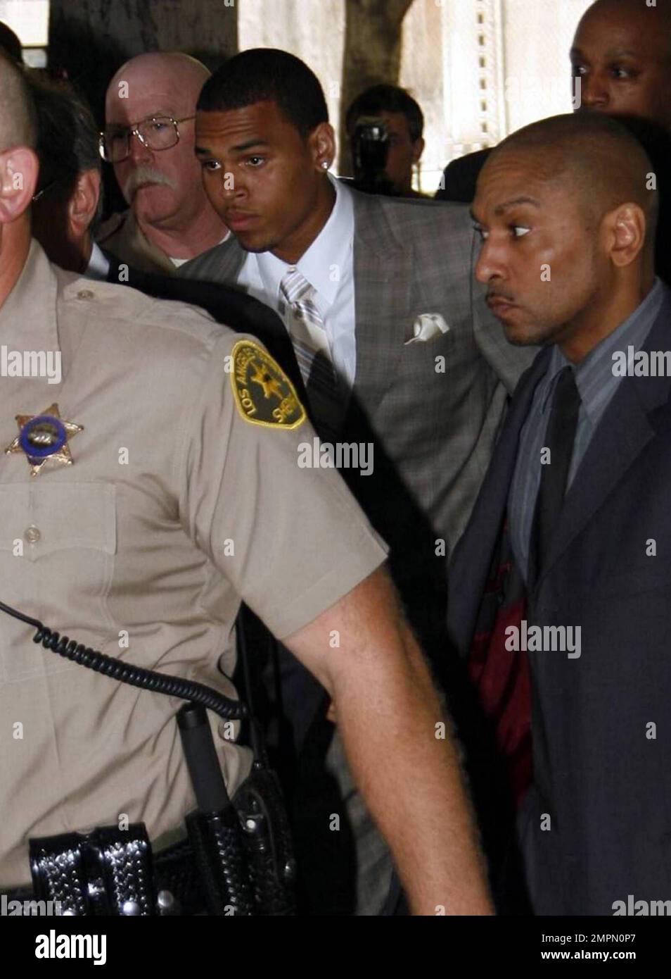 Chris Brown leaves the hearing at Los Angeles Criminal Court after