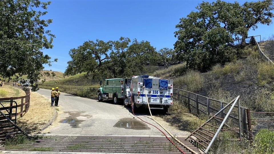 Fire crews respond to a vegetation fire at Figueroa Mountain Rd and