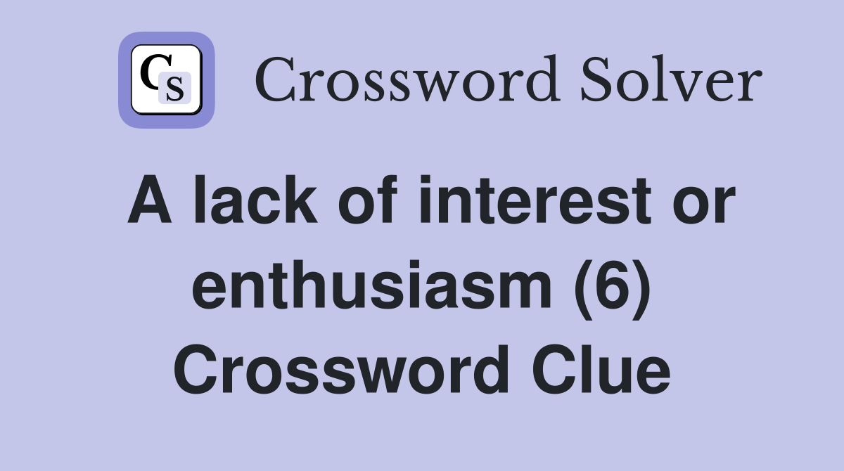 A lack of interest or enthusiasm (6) Crossword Clue Answers