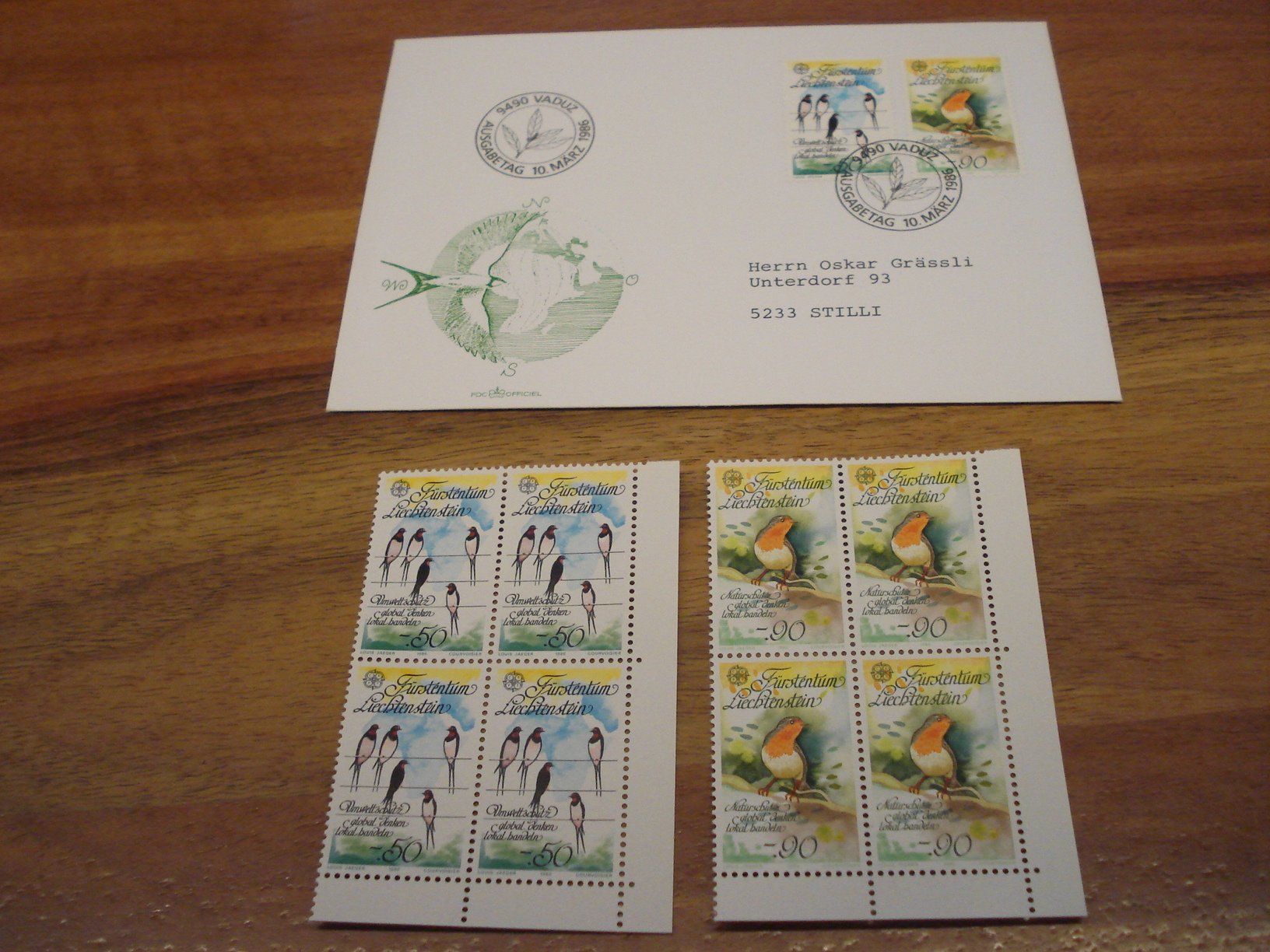 Liechtenstein Satz Vögel Europa 1986 FDC Lose 4erbl** (Gebraucht