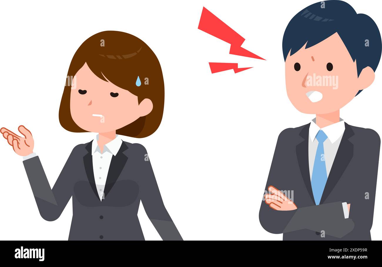 Elderly couple in their 70s 80s He questions her harshly Stock Vector