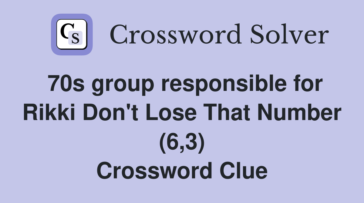 70s group responsible for Rikki Don #39 t Lose That Number (6 3
