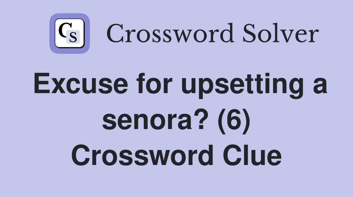 Excuse for upsetting a senora? (6) Crossword Clue Answers Crossword