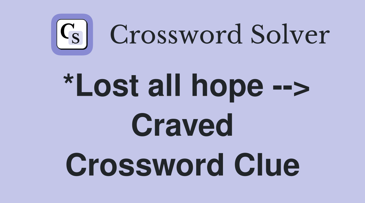 *Lost all hope Craved Crossword Clue Answers Crossword Solver