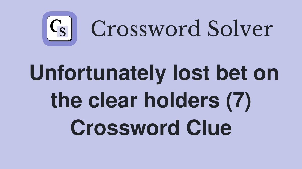 Unfortunately lost bet on the clear holders (7) Crossword Clue