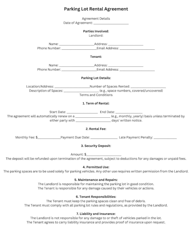 Parking Lot Rental Agreement Template Etsy