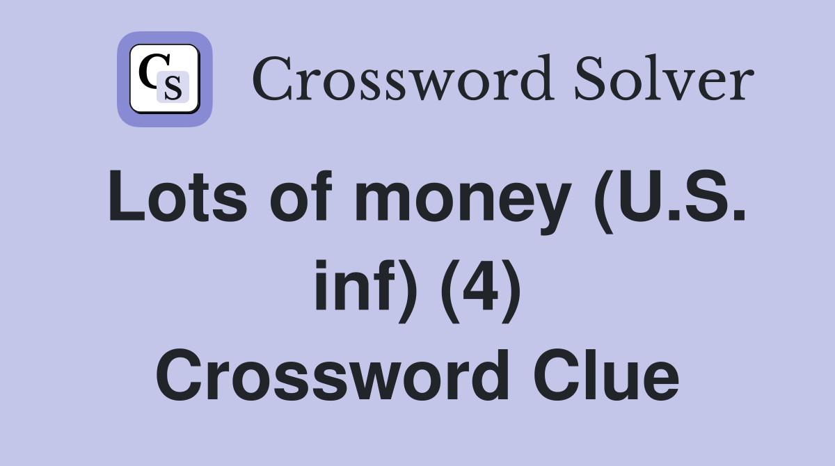 Lots of money (U S inf) (4) Crossword Clue Answers Crossword Solver