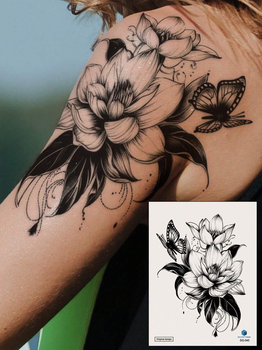 STARTTOOS 1pc Black Mysterious Lotus Flower Butterfly Pattern