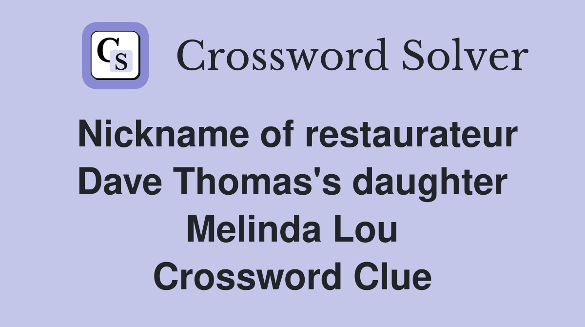 Nickname of restaurateur Dave Thomas s daughter Melinda Lou Crossword
