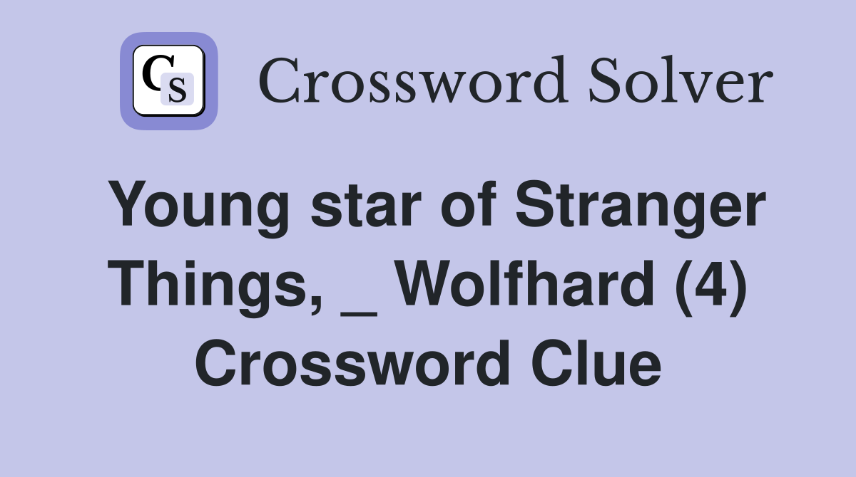 Young star of Stranger Things Wolfhard (4) Crossword Clue Answers