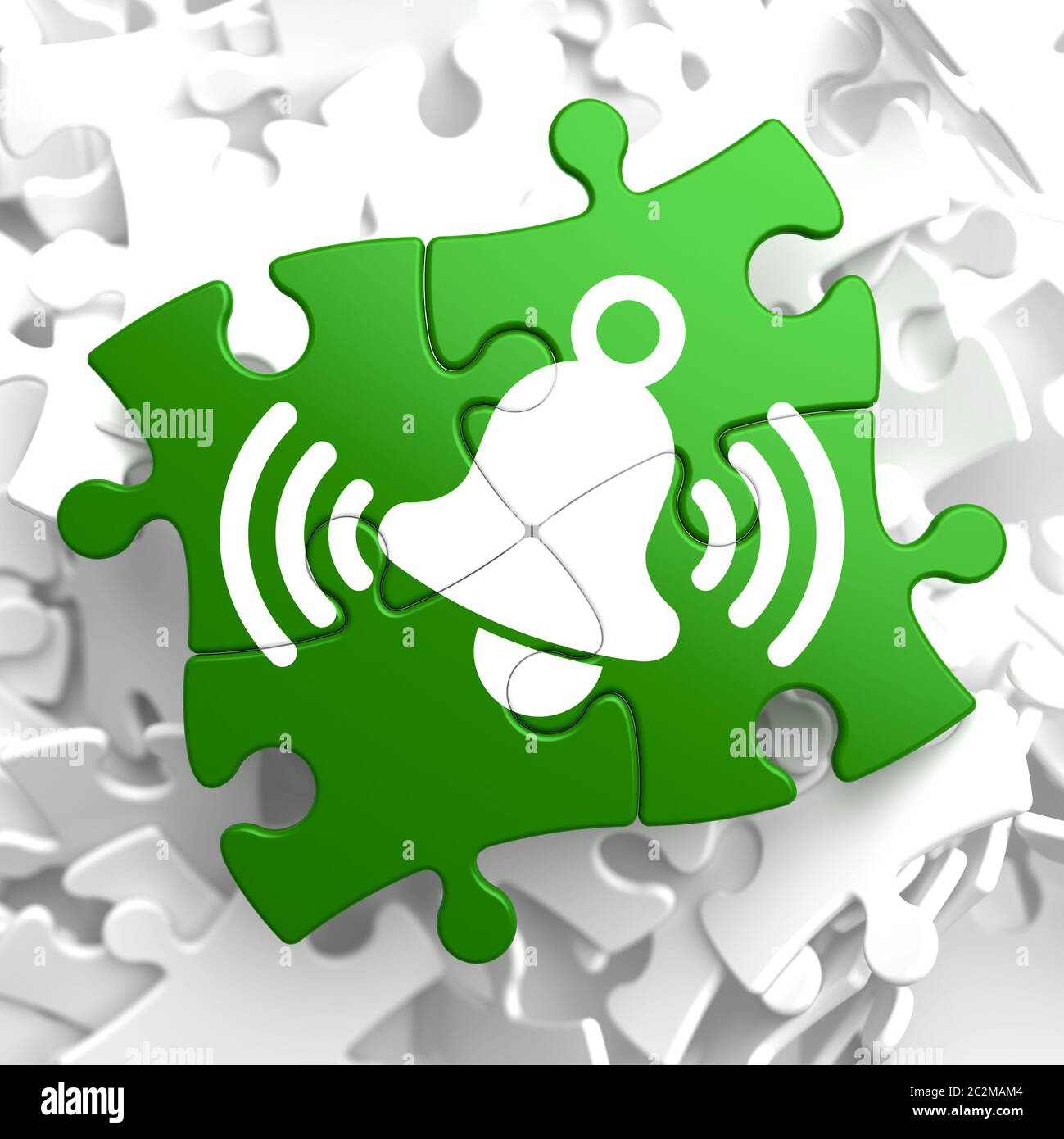 Ringing White Bell Icon on Green Puzzle Stock Photo Alamy