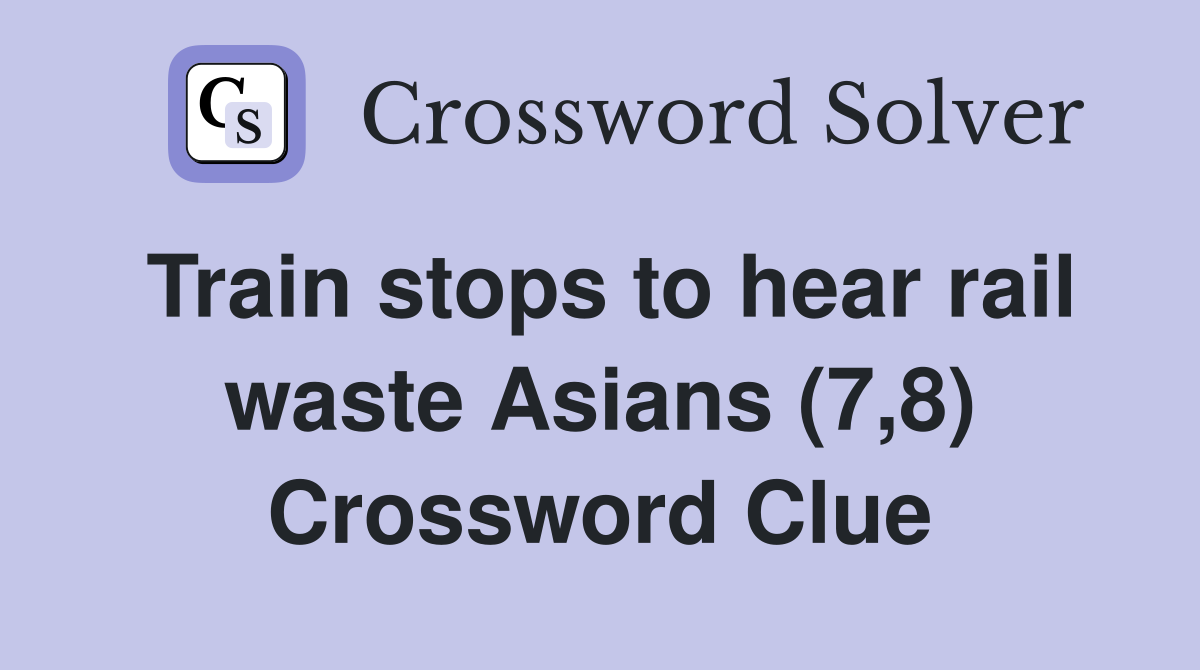 Train stops to hear rail waste Asians (7 8) Crossword Clue Answers